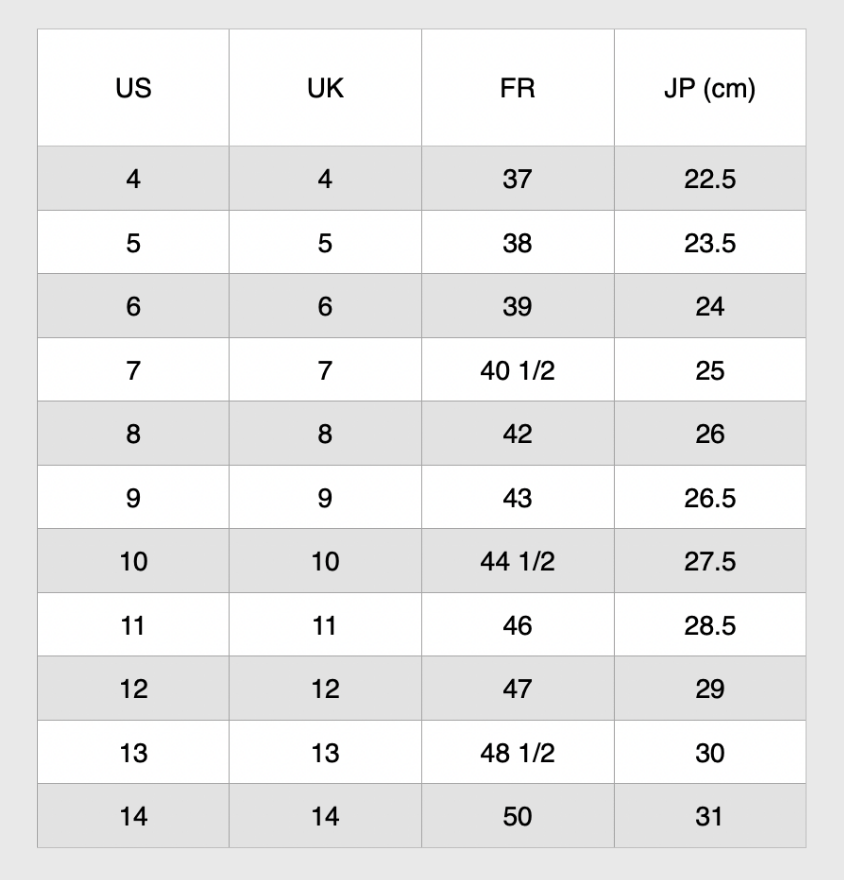 виміряйте довжину устілки комфортних для Вас кросівок у сантиметрах і підберіть свій розмір відповідно до даних у таблиці;